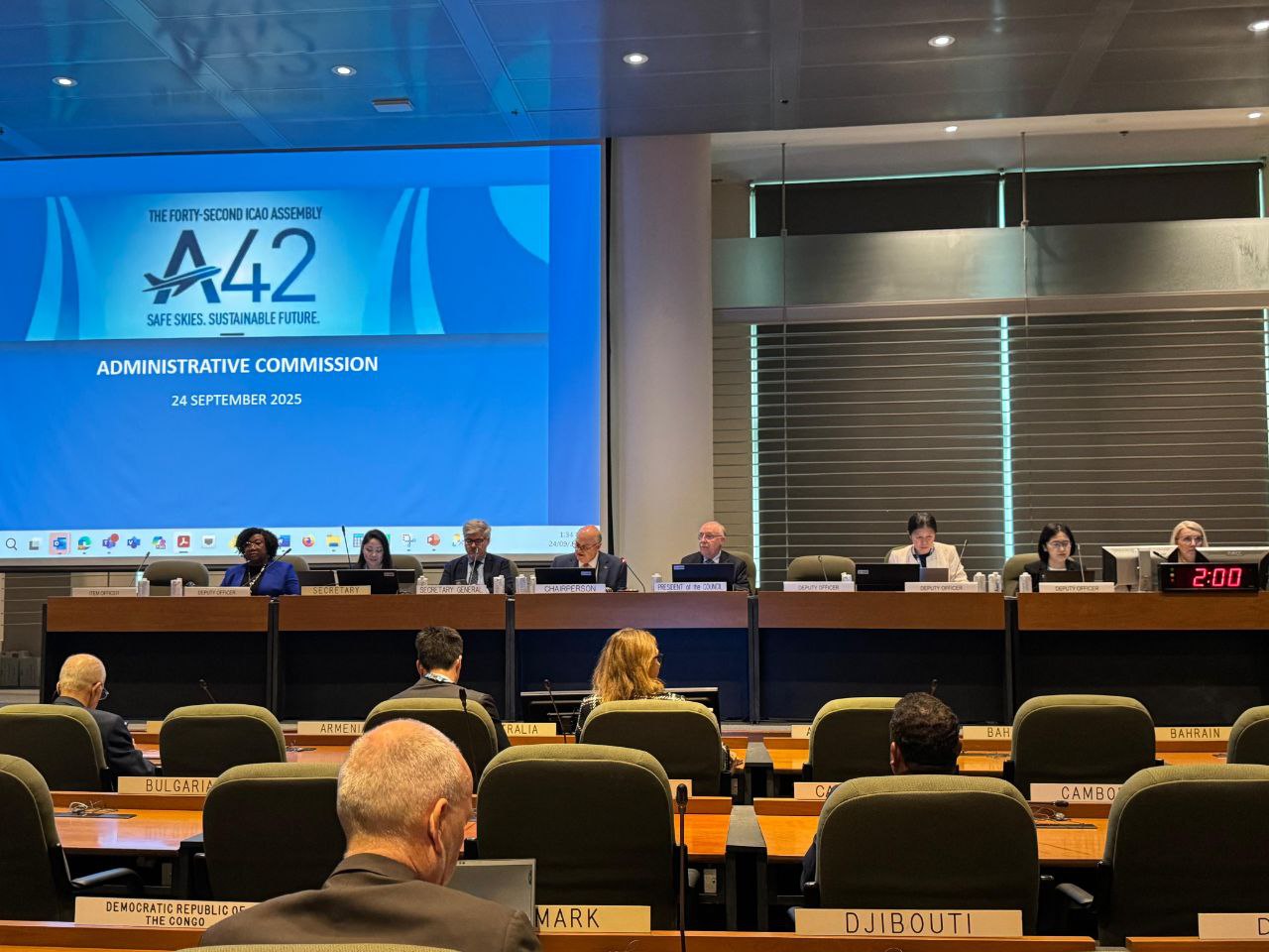 Канаданың Монреаль қаласында мемлекеттер делегациялары басшыларының шешімімен Әкімшілік комиссиясының төрағасы болып ИКАО-дағы Колумбияның Тұрақты өкілі Маурисио Рамирес Коппель тағайындалды. Төраға орынбасарлары қызметіне Азаматтық авиацияның бас директоры Сьерра-Леоне Мусайеро Барри, ИКАО Кеңесіндегі Үндістан өкілі Ангшумали Растоги және ҚР КМ Азаматтық авиация комитетінің төрағасы Салтанат Томпиева сайланды. Бұл лауазымды алғаш рет Орталық Азия өкілі иеленіп отыр.