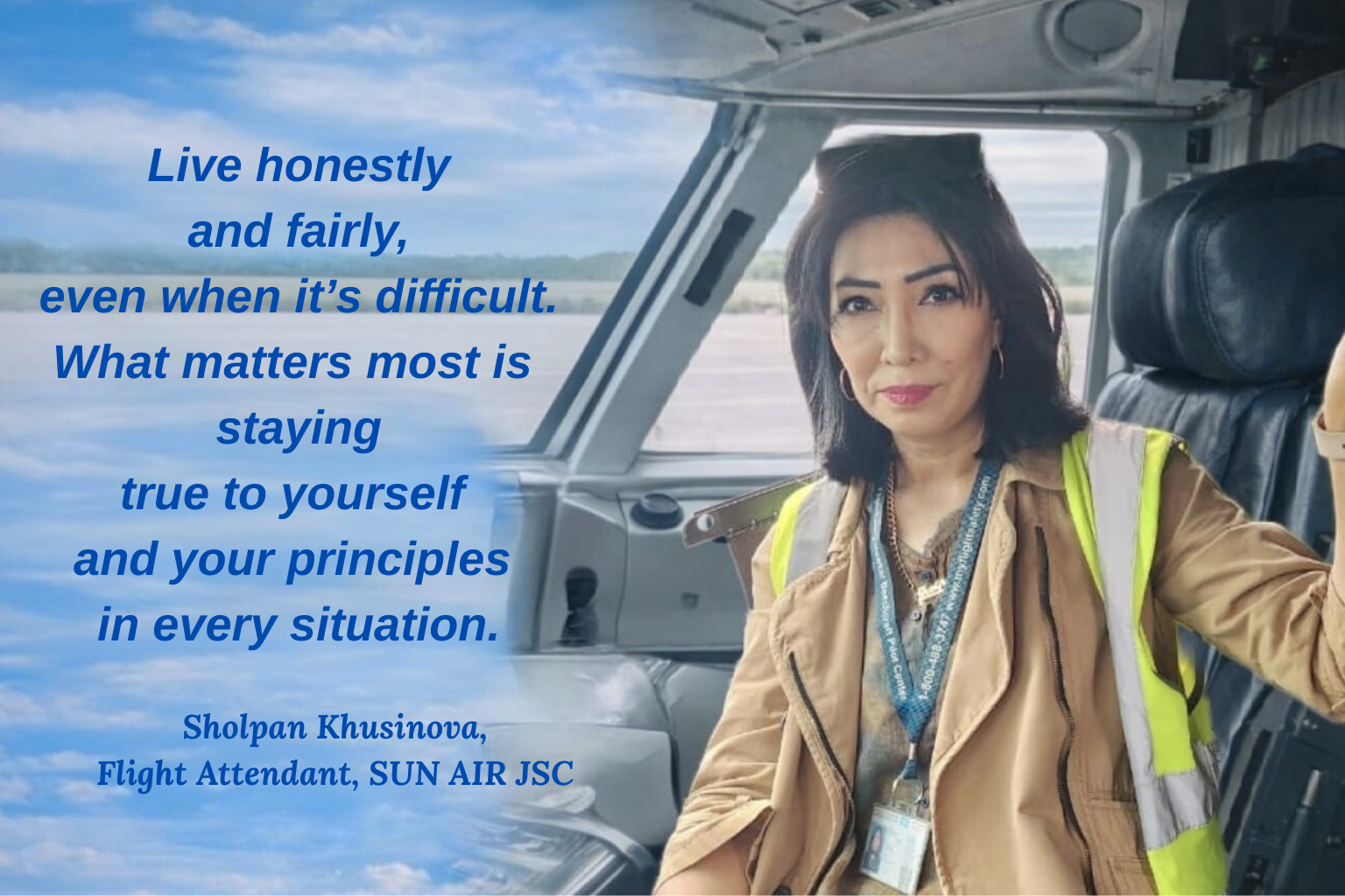 Sholpan Khusinova, Flight Attendant at SunAir.